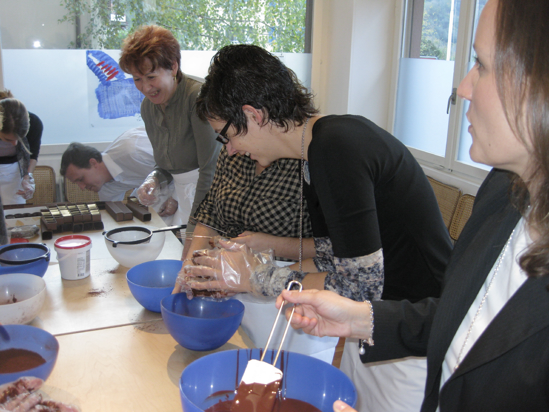 Sie lernen natürlich auch wie man die Couverturen optimal temperiert, wie die Pralinen abgefüllt werden und wie sie edel eingekleidet werden.