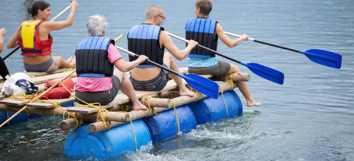 Teambuilding: Nur gemeinsam schafft ihr es, eine funktionierende Konstruktion auf die Beine (oder besser: aufs Wasser) zu stellen.