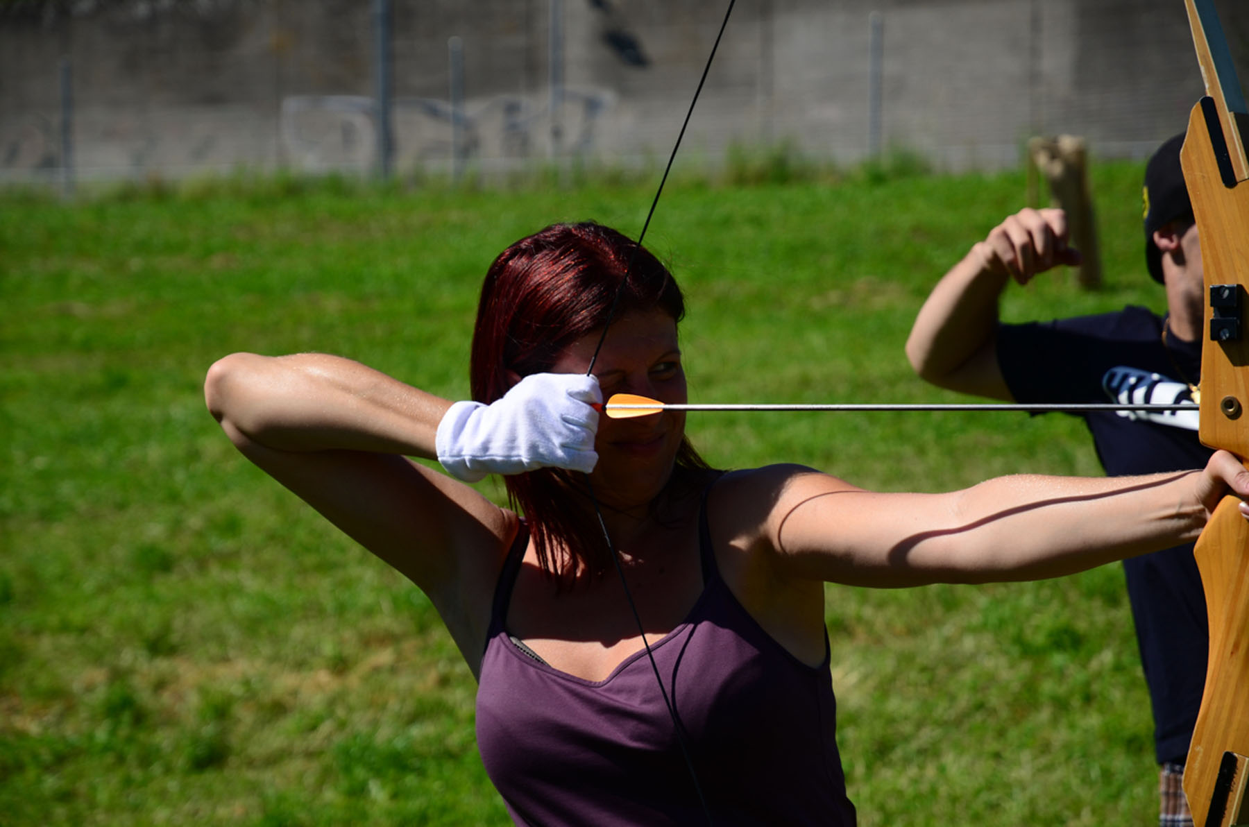 Nach der Begrüssung beim Rafters Treffpunkt lernen Sie den Umgang mit Pfeil und Bogen und wie Sie es schaffen können auch ohne komplizierte Zielvorrichtungen den Pfeil ins Zentrum zu bringen.