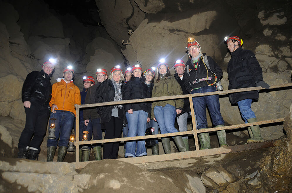 Gut kombinierbar mit stimmungsvollem Höhlen-Apéro oder Höhlen-Raclette bei Kerzenlicht und Höhlenmusik