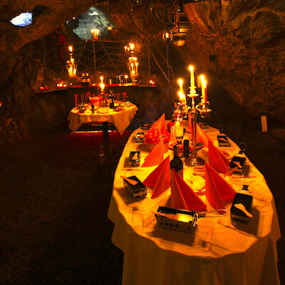 einmalige, zauberhafte Atmosphäre bei Kerzenlicht und Höhlenmusik