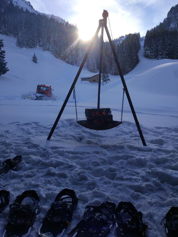 Tourenleiter, Glühwein am Lagerfeuer, Käsefondue, Schneeschuhmiete, Stirnlampen
